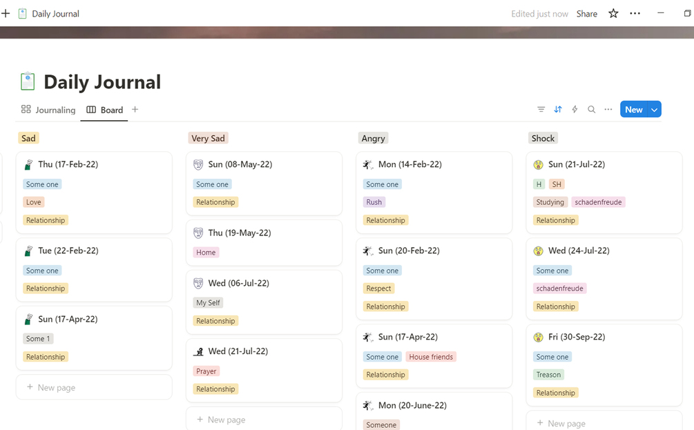 Entries are automatically sorted by date, emotion, or topic.