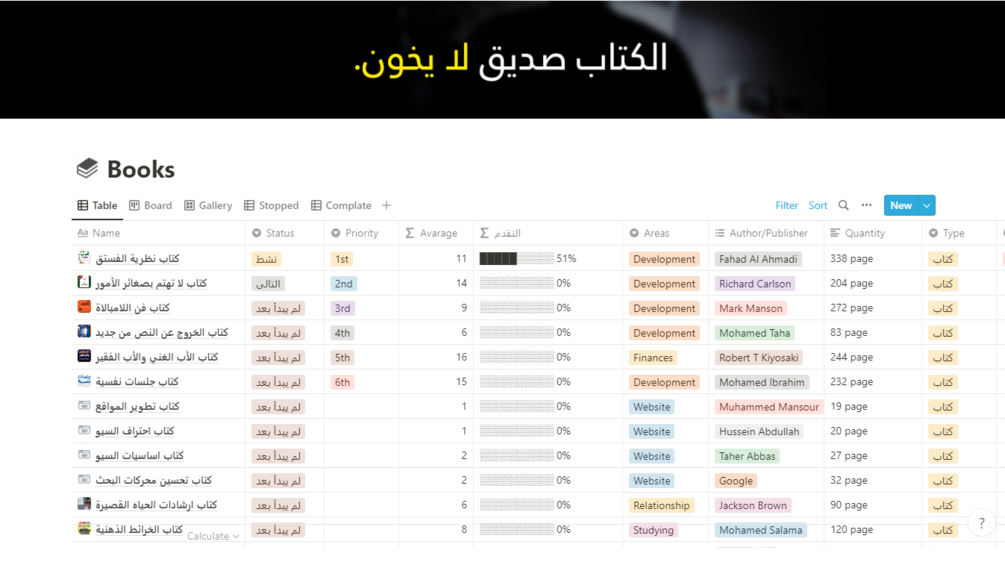 صنّف كتبك حسب النوع، المؤلف، أو الحالة، لسهولة الوصول إليها دائمًا